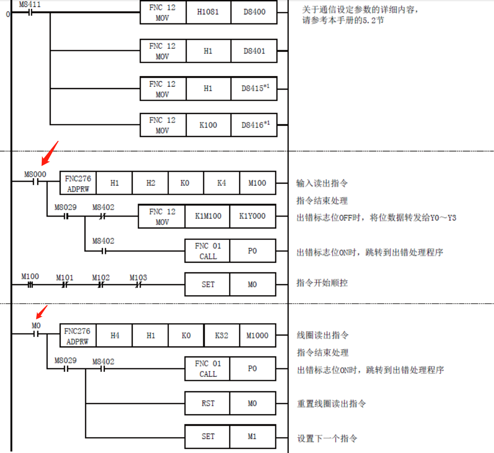 . 請在MODBUS通信過程中(M8401/M8421)的OFF條件成立的狀態下,使用ZRST(FNC 40)指令等執行狀態的成批復位。