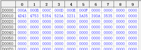 根據ASC碼表得到D10~D17中存儲的字符串為: