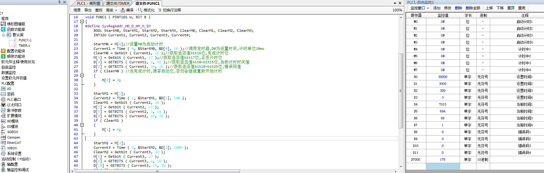 函數(shù)返回值為32位無符號值,例如Current1 = Time ( 0, &StartM0, &D[0], 10 ),其中Current1為32為無符號值,且為Time0的返回值。bit0~bit15位為當(dāng)前計時時間,bit16為完成計時位,bit17為正在計時位,bit18~bit25為錯誤碼輸出,bit26~bit31為預(yù)留位。