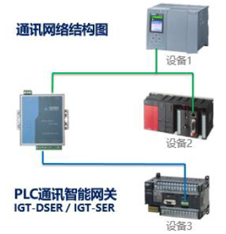 西門子PLC與三菱Q系列PLC跟智能網(wǎng)關(guān)之間是通過交換機(jī)以太網(wǎng)連接,網(wǎng)關(guān)參數(shù)軟件的電腦也是連接在這個(gè)交換機(jī)上;歐姆龍PLC跟網(wǎng)關(guān)之間是串口連接,如下圖:
