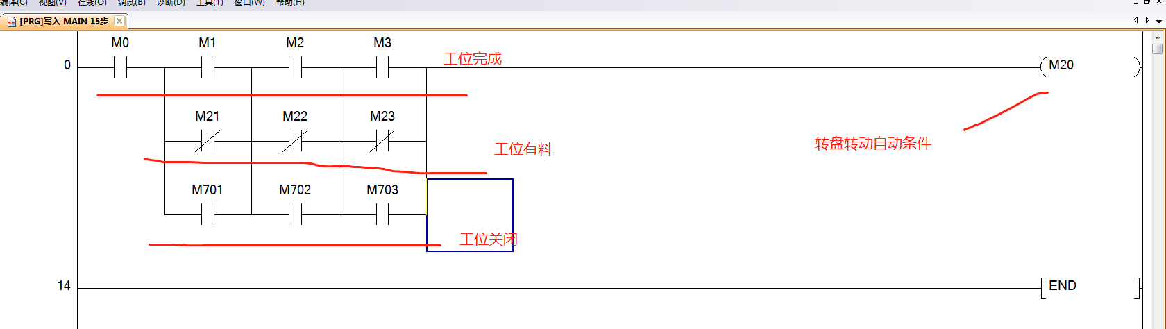 有幾個工位,就用幾個地址賦值,全部工位工作完成后,啟動轉盤,轉盤轉一下,用字移位方法把當前工位狀態轉移到下一個工位,就知道每個工位狀態了。