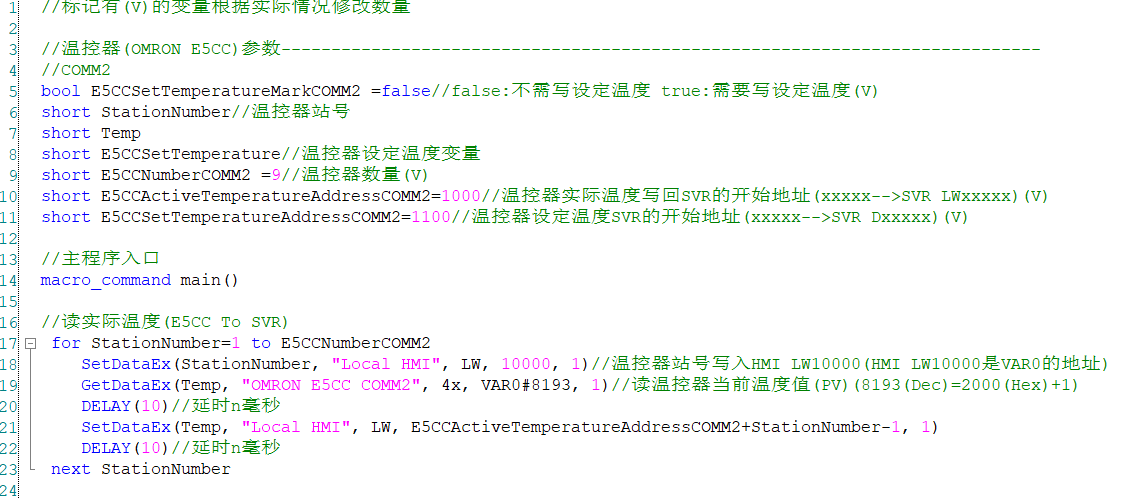 讀溫控器PV值時用的是VAR0變量輪詢9個溫控器,#8193轉16進制為2001,但歐姆龍E5CC溫控器2字節模式時,定義PV值的地址是2000啊,為何程序里寫的是2001呢?