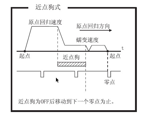 引用引用第1樓brainy_fa于2023-05-16 00:10發表的 :【近點狗】就是一個外部開關,伺服電機回原時先高速運行,碰到這個開關就變為慢速。慢慢離開這個開關后,以這個速度繼續移動,找【零點】信號。這個【零點】信號一般是伺服電機的編碼器的Z相脈沖。每一圈有一個Z相脈沖,所以這個圖里【零點】有多個,代表伺服電機回原時轉了很多圈,但【原點】(圖中所標起點)是離開近點狗之后的第一個零點的位置。