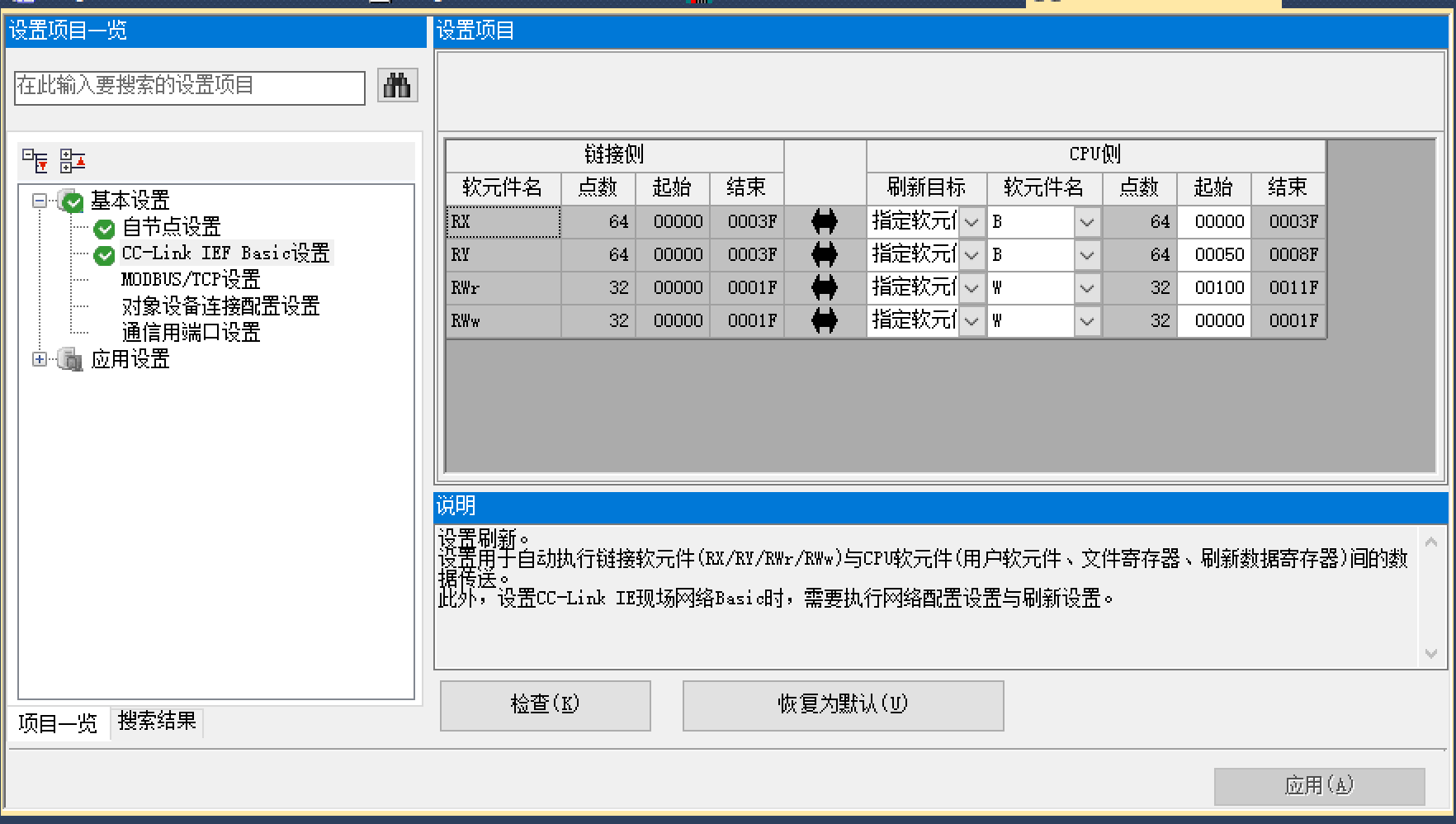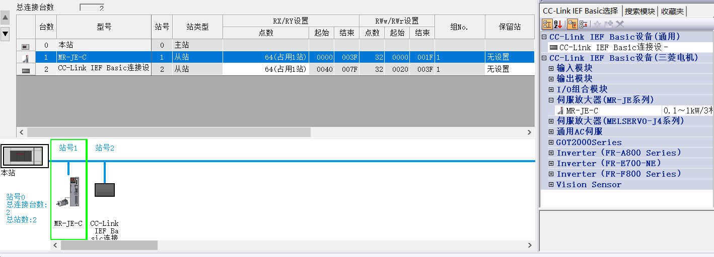 引用引用第7樓l229837741于2023-07-19 21:46發表的 :問題已經解決,第二張圖片不能選擇MR-JE-CE而是選擇CC-LINK IEF BASIC(通用),選擇MR-JE-C,RX3F反饋也是通的,轉動電機軸讀RWr速度位置PLC監控都有反應,就是寫不行