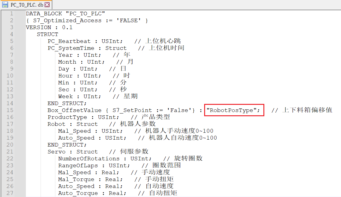 西門子的數據塊解釋文件長這樣,  可以用博圖得到。