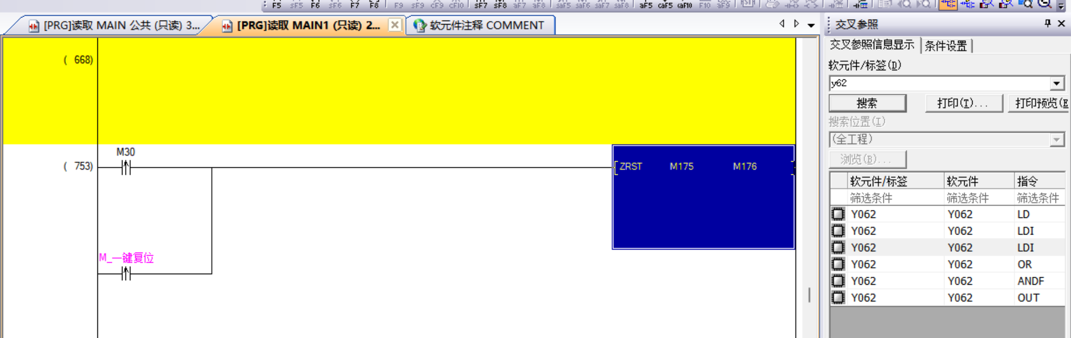 程序中有一段黃色區域,未見程序。在交叉搜索中有關聯,指向了這一段空白區域