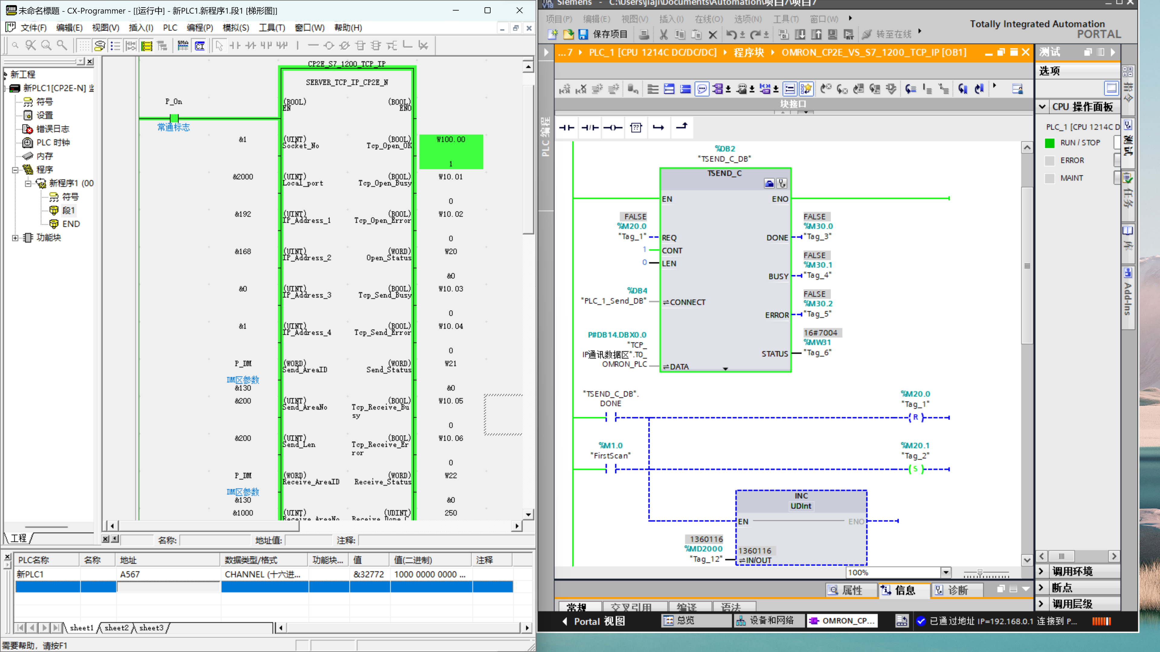 s7_1200同omron cp2e_n _TCP_IP 仿真測試成功
