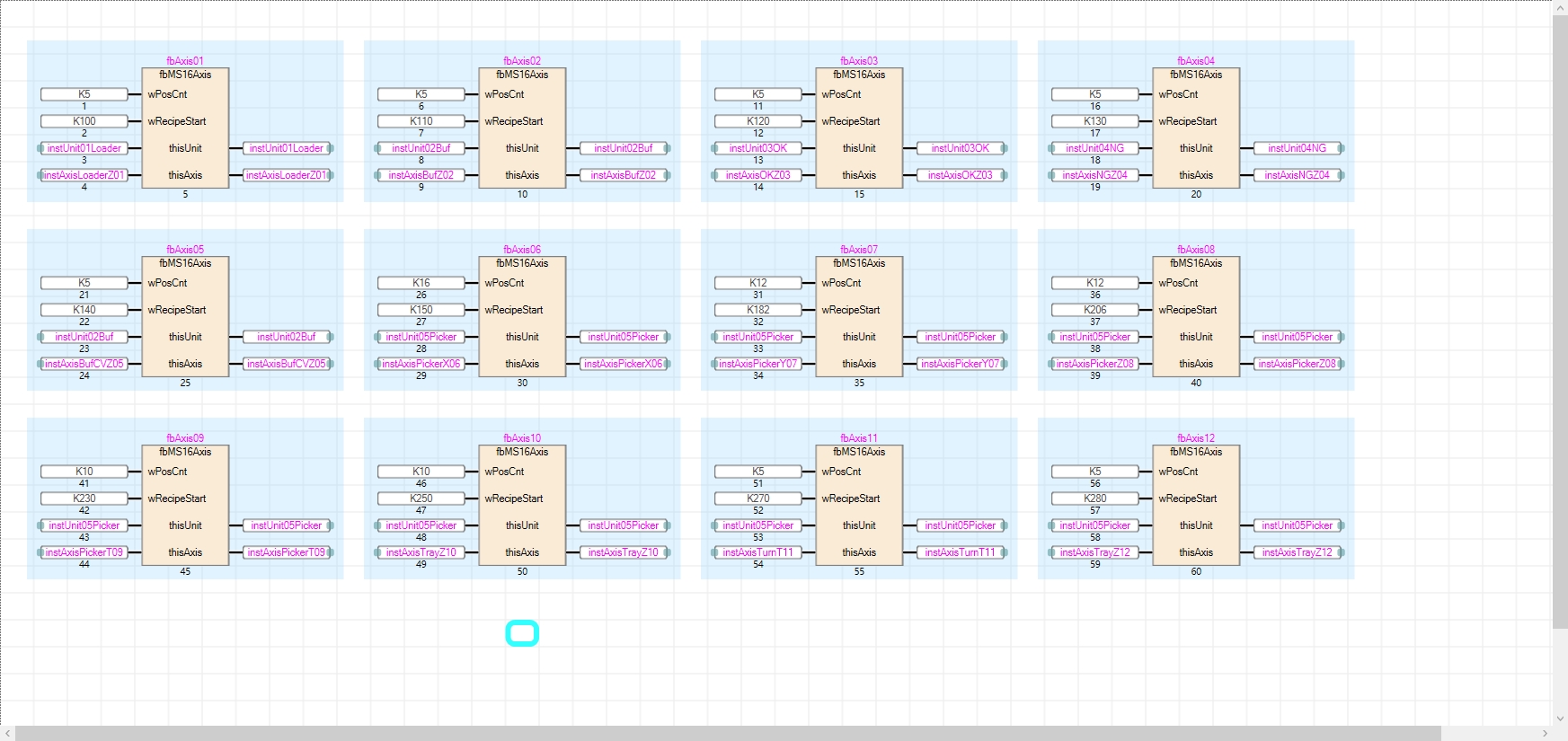 我上次一開始就是用結構體,后來寫著寫著發現PLC空間不夠了,因為我的結構體里面東西太多了,每一個FB相當于就復制一份,然后我就想拆開吧,不要的數據不要輸入了,最終結果就是拉線拉得慘不忍睹 ![]()