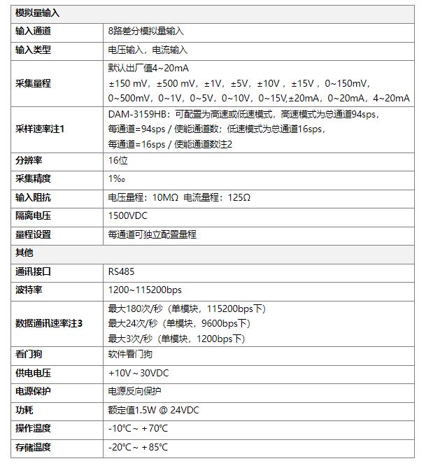 DAM-3159HB為8路差分模擬量輸入,16位AD,模擬量輸入隔離,RS485通訊接口,支持ModbusRTU協議,可定制支持ASCII協議。配備良好的人機交互界面,使用方便,性能穩定。