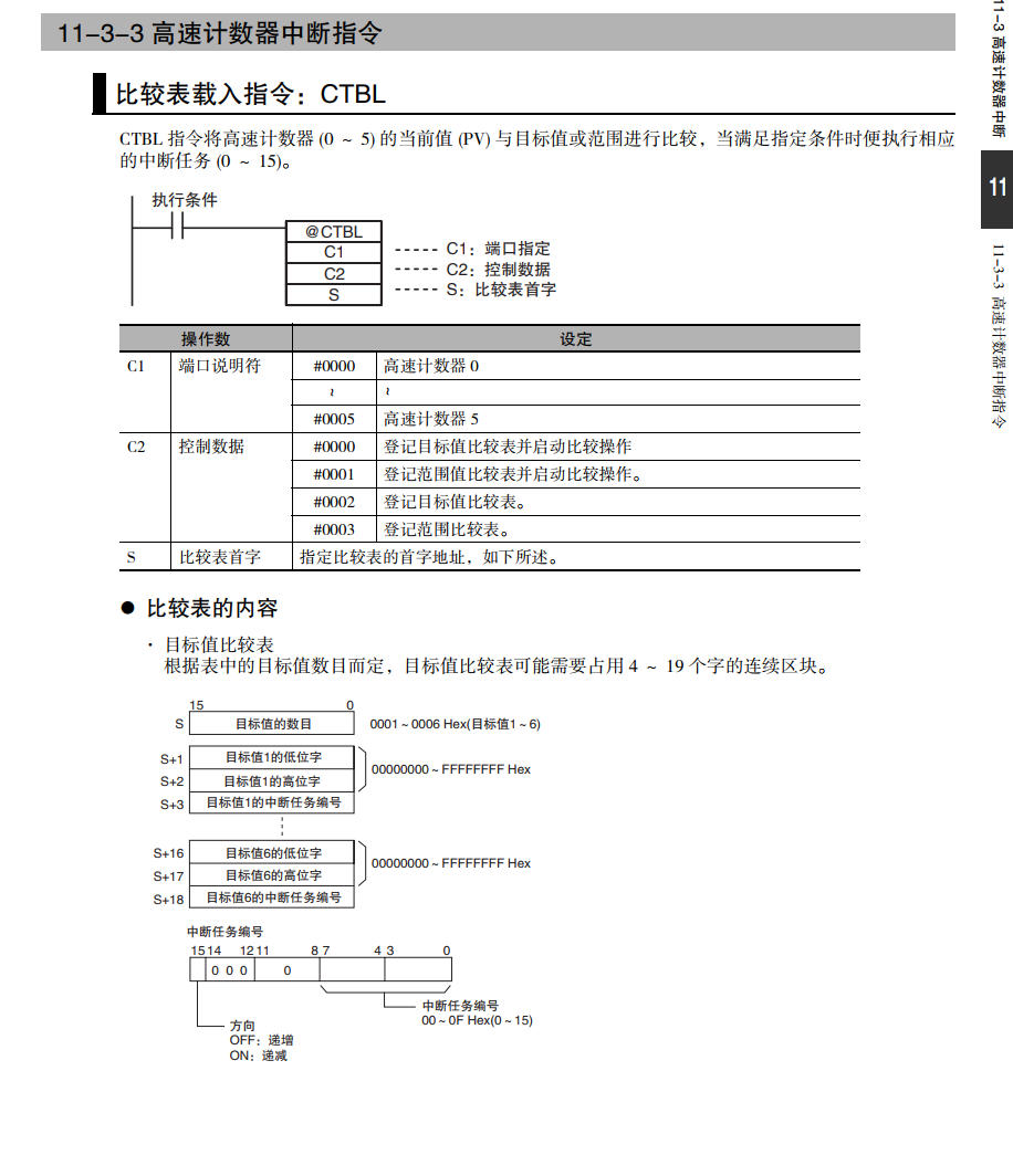 看手冊,CP2E的高速計數器比較表CTBL指令只能登陸6個比較目標,我實際應用需要11個,有沒有辦法用其它方式實現高速這計數比較功能,比如用CMP指令?