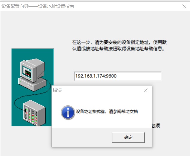 點擊下一步時會出現如下錯誤:設備地址格式錯,請參閱幫助文檔!