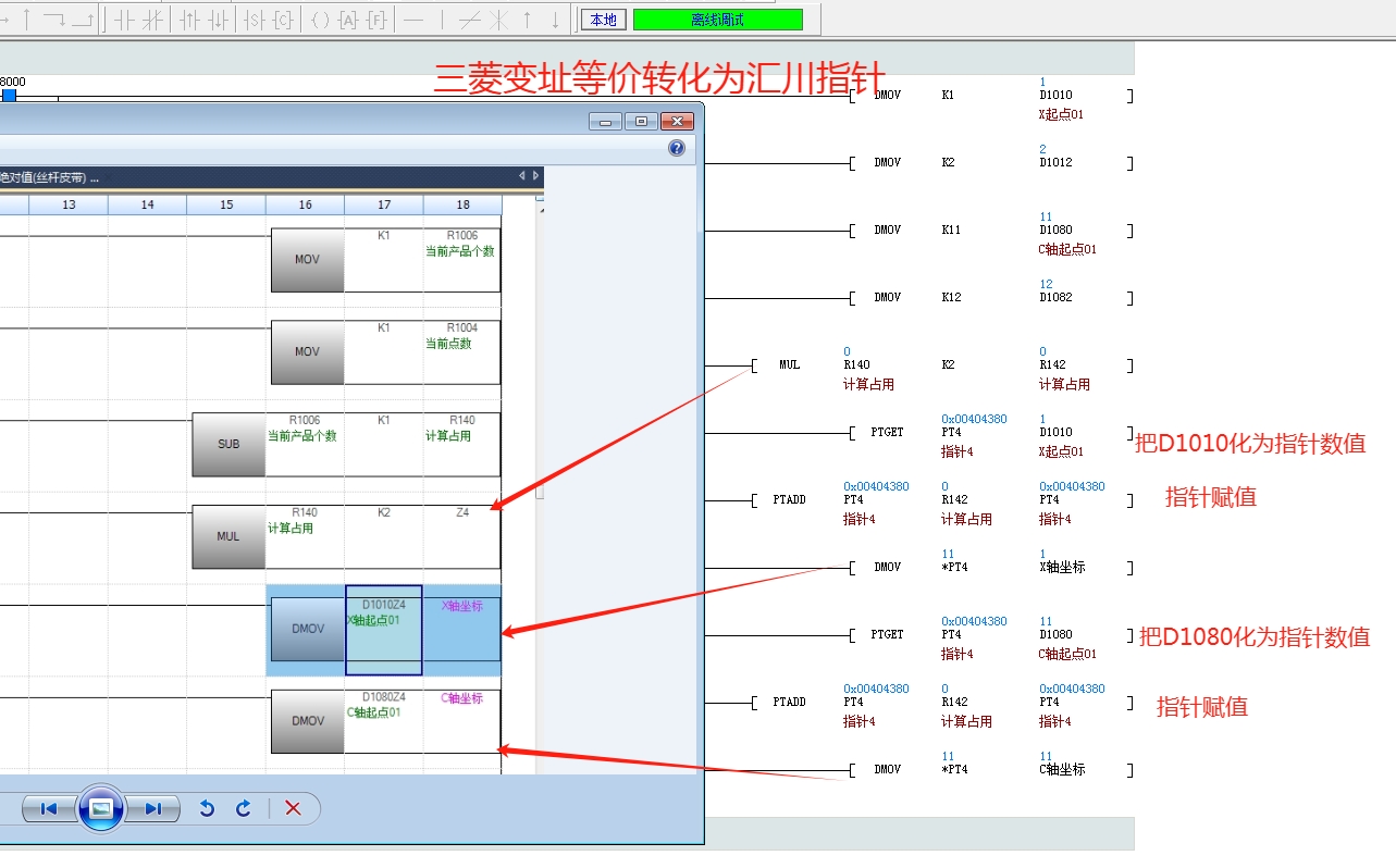 引用引用樓主夢(mèng)雨天涯于2024-08-30 12:33發(fā)表的 三菱變址等價(jià)轉(zhuǎn)化為匯川指針 :如圖,老板為了省錢(qián),需要把三菱5U+松下A6的伺服,更換成匯川H5U+匯川660伺服,沒(méi)得辦法,指令要學(xué),變址要學(xué),總線要學(xué),以太網(wǎng)通訊也要學(xué),還要字符串提取變化,還有變址指針……