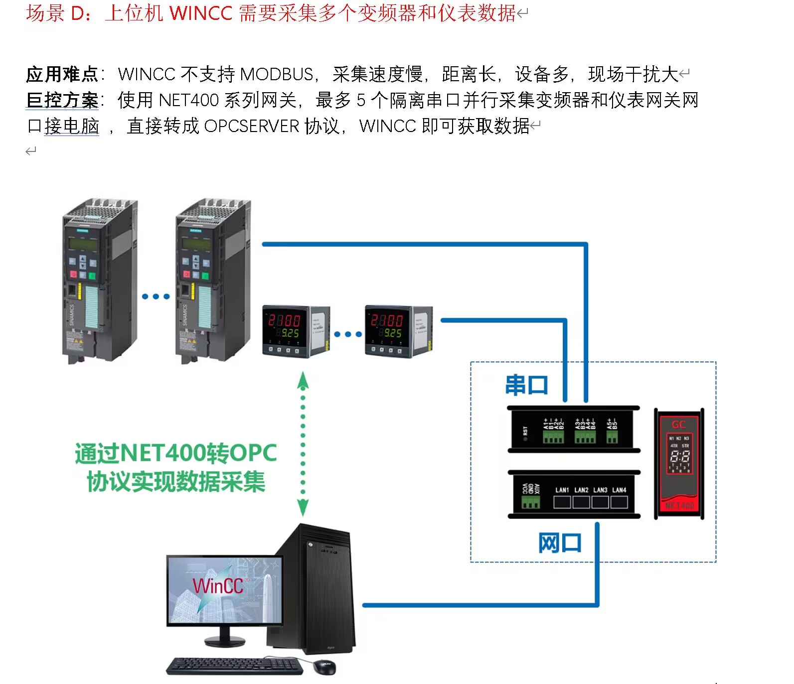 巨控 NET400系列PLC協議轉換網關,簡化了PLC、儀表和設備間的協議轉換和數據交換,提高了系統的集成度和兼容性,還通過優化的通訊策略和強大的數據處理能力,提升了通訊效率和系統穩定性。