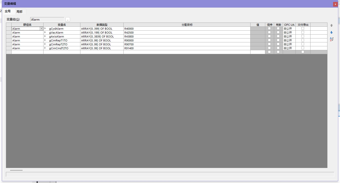 1、把如下多個Alarm進行堆棧延時上報,比如R40000為報警Id1,R40001為報警Id2,依次類推,On或Off時記錄到一個類似表格的堆棧,