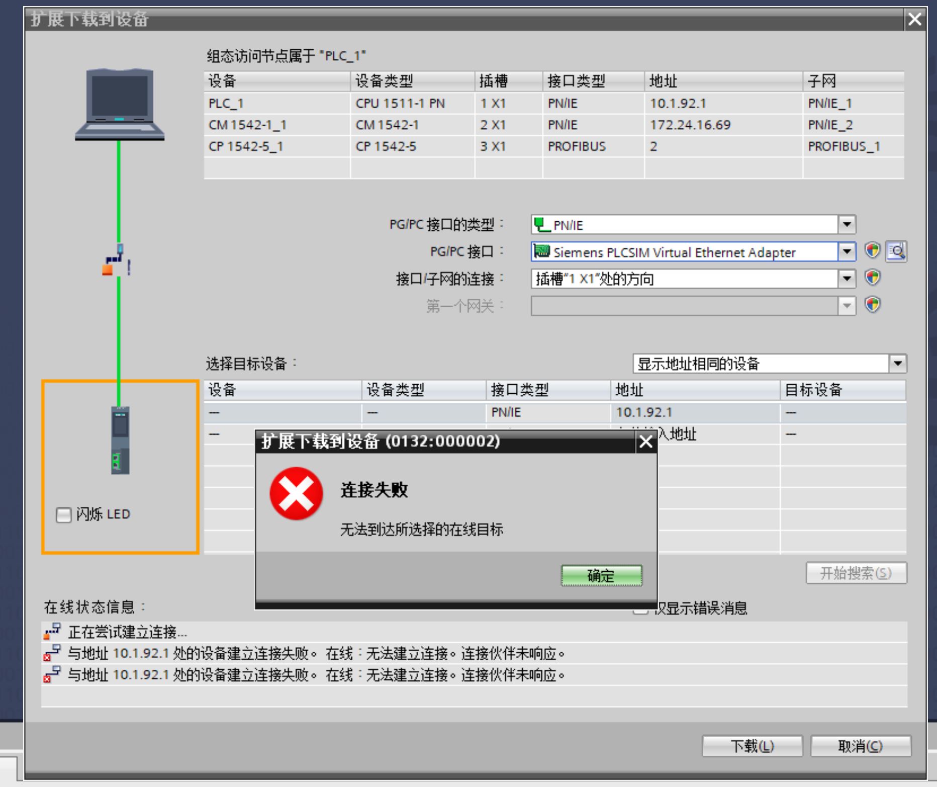博途V19仿真失敗,請用過的大神們,指點一二,請賜教。項目IP地址:10.1.92.1