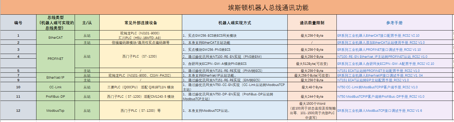 文件為Estun埃斯頓機器人總線通訊功能相關手冊,包含本身支持的通訊及可以擴展的通訊,供大家學習參考