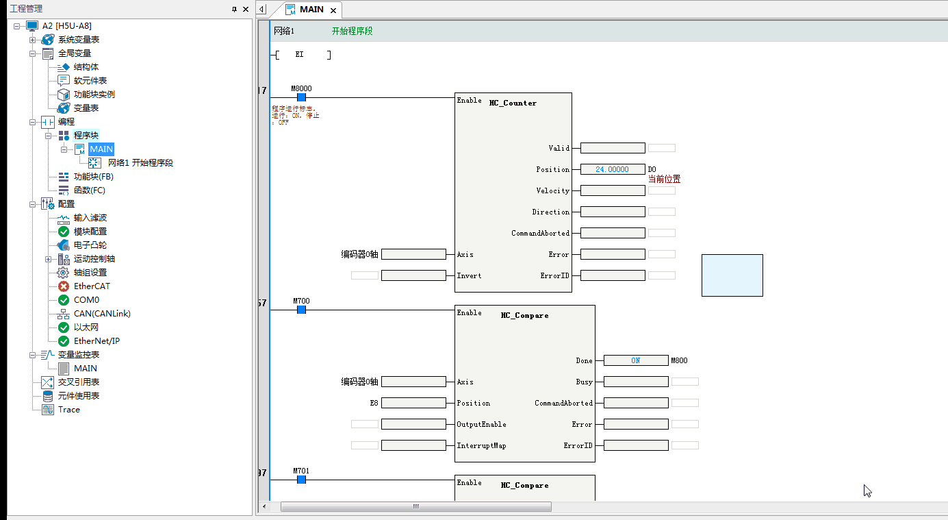 1編碼器沒有達(dá)到數(shù)值也會(huì)繼續(xù)輸出,需要關(guān)閉M700后才能繼續(xù)接通