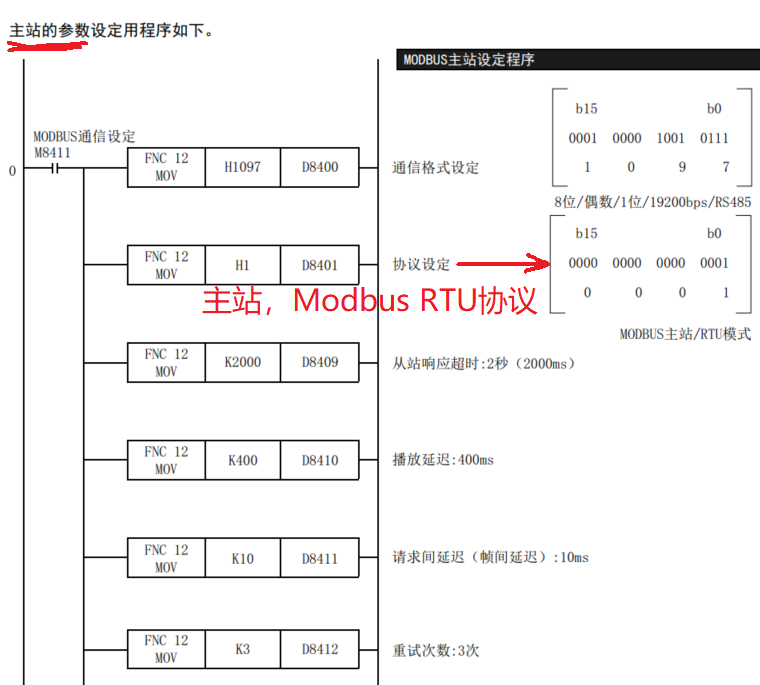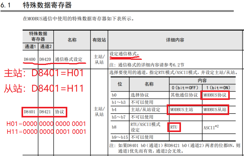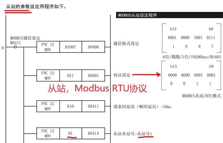 FX3U做從站,資料里說要用M8114觸點來設置D8400,為H11,見附件附圖,
