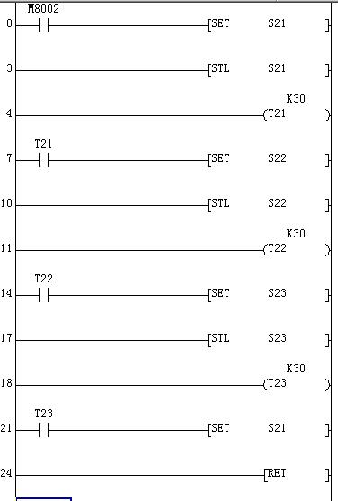也就是當(dāng)S21置位時(shí),執(zhí)行STL S21后面的程序T21記時(shí),在T21 記時(shí)滿(mǎn)3S前不執(zhí)行7-24步?