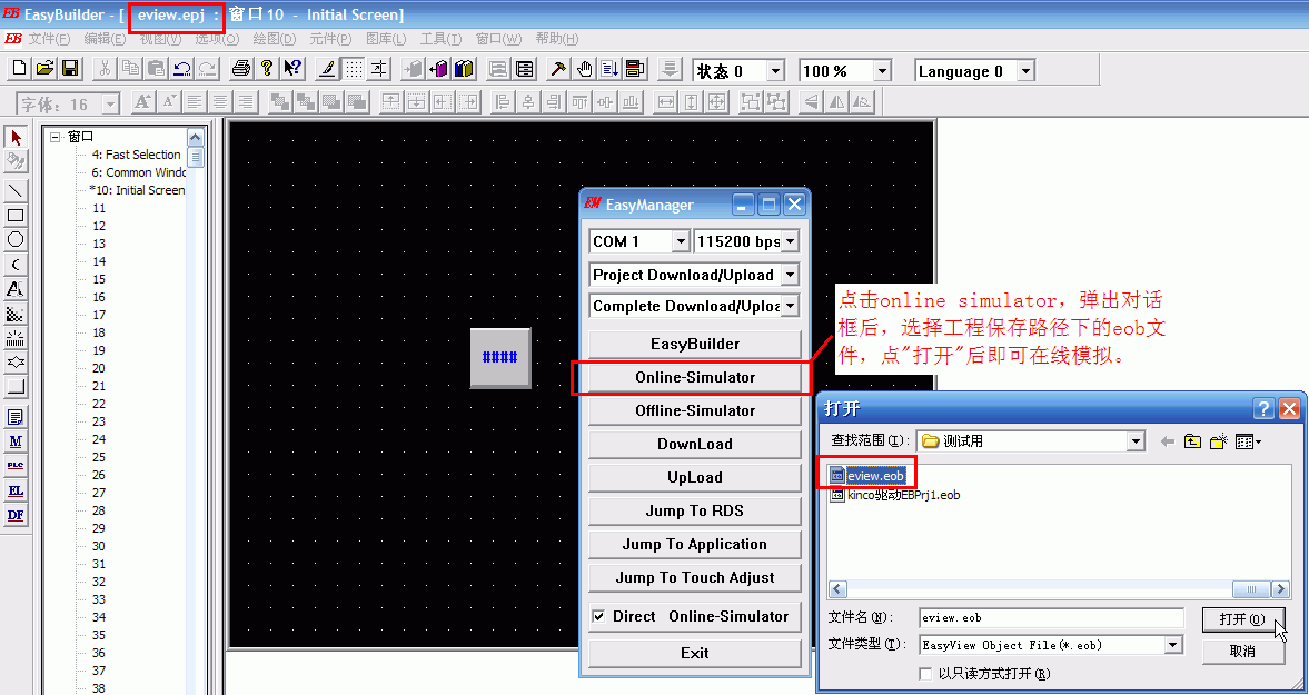 在EVIEW手冊在提到:支持在線模擬功能,即使你手頭上沒有屏也可以開發(fā)和測試你的畫面,為你的開發(fā)提供最大的便利。