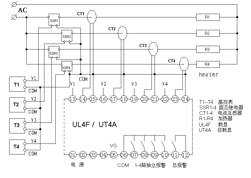 單相SSR控制的單個或者多個并聯(lián)加熱器斷線檢測。全功能專業(yè)級加熱器斷線報警器,斷線、過流、異常加熱報警。